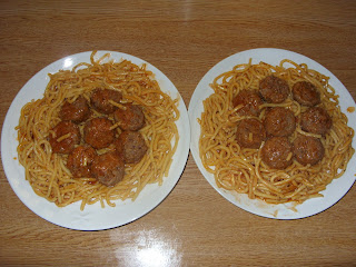 mete-se a massa nos pratos e depois "decora-se com as almôndegas e por fim rega-se com o molho e bom apetite.